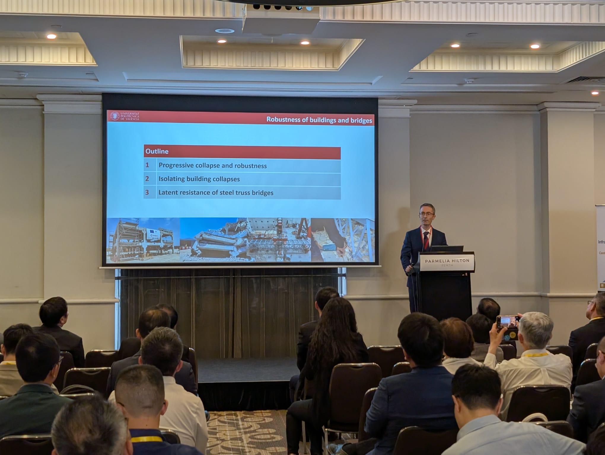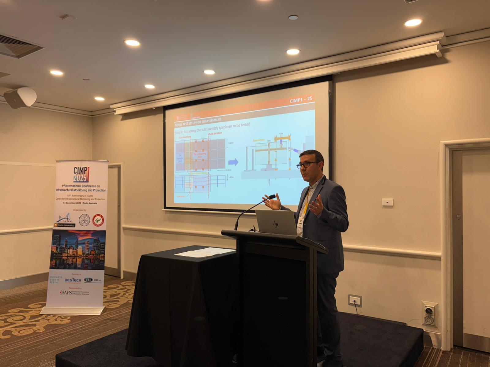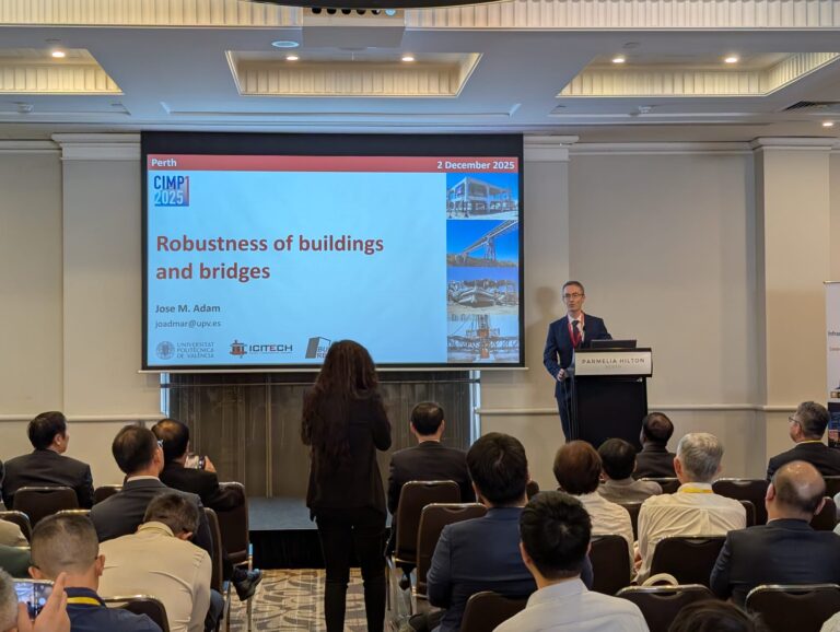Jose Adam, Manuel Buitrago, and Juan José Moragues attended the 1st International Conference on Infrastructural Monitoring and Protection – CIMP1 2025, celebrated in Perth (Australia), 1st – 4th December 2025 (https://cimp1-2025.org/). Jose Adam delivered a keynote lecture entitled “Robustness of Buildings and Bridges: Insights from Large-Scale Testing”. Manuel Buitrago was the chair of the session and delivered the presentation “A fuse-based solution for protecting structures against disproportionate collapse”.
