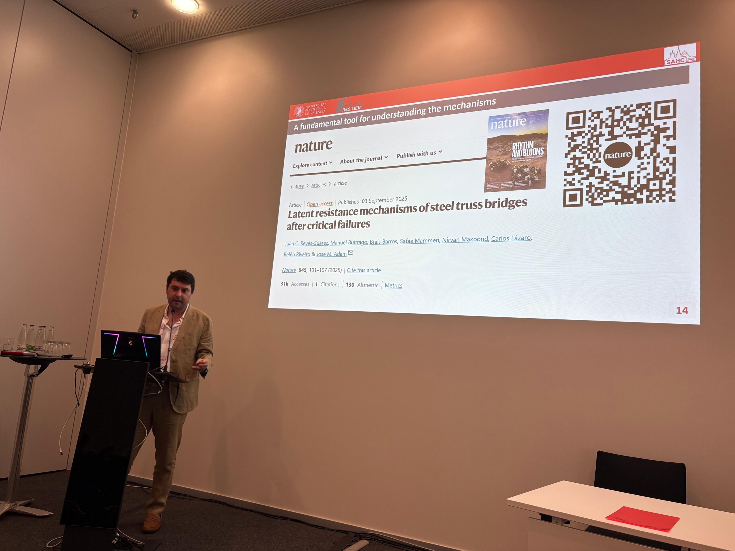 Juan Camilo Reyes and Jose Adam attended the 14th International Conference on Structural Analysis of Historical Constructions – SAHC 2025, celebrated at the EPFL campus in Lausanne (Switzerland), 15th – 17th September 2025 (https://sahc2025.epfl.ch/). Juan Camilo delivered a lecture entitled “Conservation of Ageing Steel Bridges through Robustness and Monitoring” about the Pont3 project, in which we highlighted our recent publication in Nature Magazine: “Latent resistance mechanisms of steel truss bridges after critical failures”.